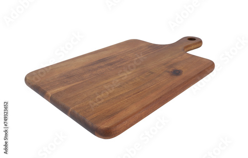 Natural wooden cutting board isolated on white background. Wide angle image.