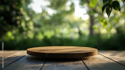 wooden, display, nature, wood, outdoors, circular, empty, table, background, rustic