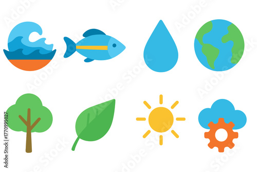 nature, environment, eco, flat, icon, friendly, education, project, green, earth, water, reusing, planet, conservation, energy, leaf, tree, sun, climate, sustainability, ecosystem, renewable, natural, habitat