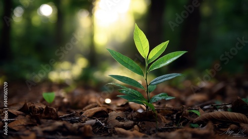 Nature Awakens: Seedling in Leaf Litter at Sunrise ,fantasy World, Fantasy Landscape