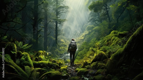 nature, green, landscape, person, illustration, hiking, forest, adventure, exploration, foliage, outdoors, trekking, wilderness, journey, solitude, calmness, escape, discovery, wanderlust, serenity, environment, conservation, trail, backpacking, expedition, scenery, lush, peaceful, rejuvenation, vitality, earth, ecosystem, biodiversity