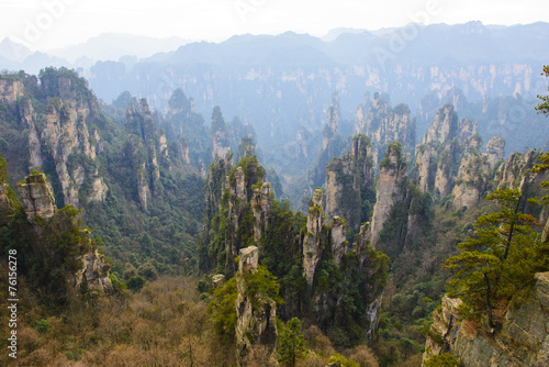 mountain peak, china, mountain, hallelujah, mountain chain, tree, rock, cliff, province, fog, vale, landscape, globe, earth, forest, asia, traditional culture, business travel, people traveling, travel, tour tourism, stone, environmental conservation, scenic, tall, majestic, awe, green, national landmark, nature, outdoors, hiking