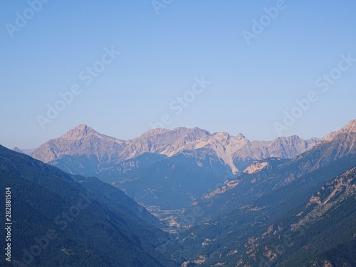Nature, meadows and peaks that characterize the landscape of the Italian Alps in Val di Susa, near the town of "Susa", Piedmont - August 2019.