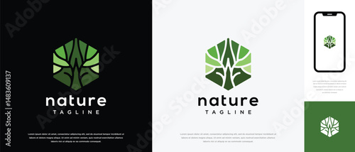 Nature tree logo design. Nature tree logo template in hexagon shape. Nature logo symbol icon