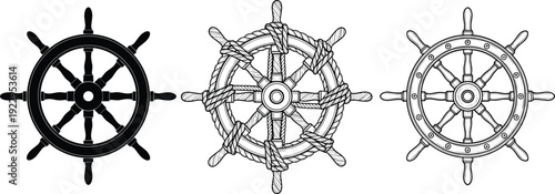 Nautical Ship Wheel Silhouette Collection – Maritime Posters, Rustic Home Decor, Creative Marketplace Designs, Ocean Lovers, Sailor Inspiration, Artistic Illustration
