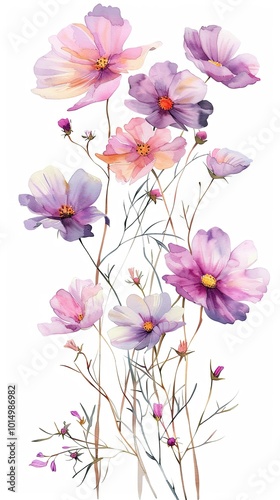 neat watercolor illustration of Cosmos on white background.