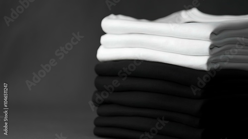 Neatly stacked folded square t-shirts in black and white, presented in a mockup for clothing design or retail