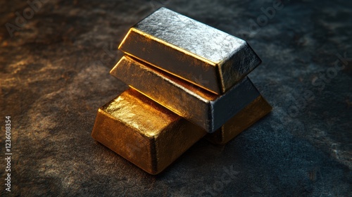 Neatly stacked gold and silver bars on a velvet-textured background