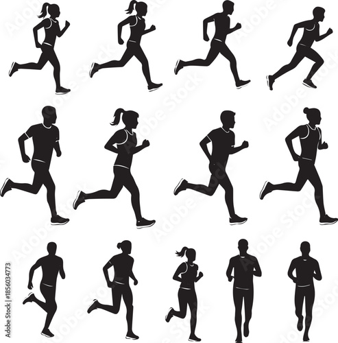 Need a group of runners Silhouette Isolated on white background. Vector icon set