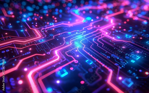 Neon Circuit Board Digital Illustration