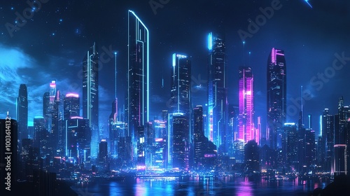 Neon Cityscape at Night with Futuristic Skyscrapers