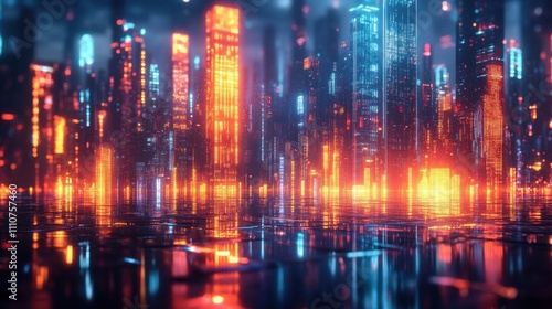 Neon Cityscapes: Digital Architecture, Glowing Lights, and Futuristic Reflections