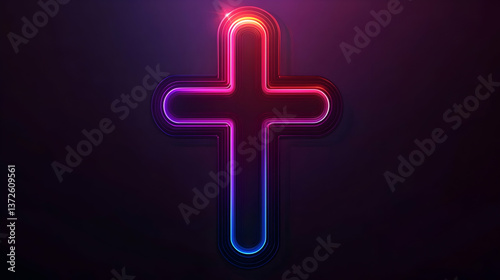 cross, neon, symbol, religious, spiritual, glowing, light, gradient, pink, purple, blue, dark, background, texture, design, faith, hope, contemporary, vibrant, colours, simple, graphic, digital, asset, image, element, artwork, abstract, bright, bold, smooth, line, visual, effect, composition, commercial, marketing, branding, website, design element, illustration