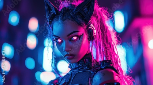 Neon Cyberpunk Catgirl Portrait: A Futuristic Fantasy