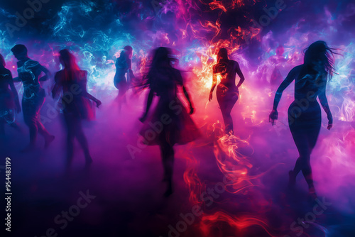 neon, silhouette, nightlife, party, club, dance, energy, atmosphere, music, light, colours, vibrant, motion, abstract, imagination, dreamlike, surreal, fantasy, mysterious, aethereal, artistic, digital, manipulation, creative, visual, dynamic, futuristic, electric, mood, expressive, enchanting, mesmerizing, illusion, power, emotion, dramatic, intense, magical, hypnotic, hallucinogen, dreamy, cosmic, modern, urban