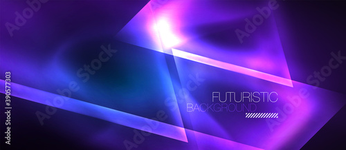 Neon geometric abstract background. Triangles with color glowing light effects in the dark. Vector illustration for covers, banners, flyers and posters and other