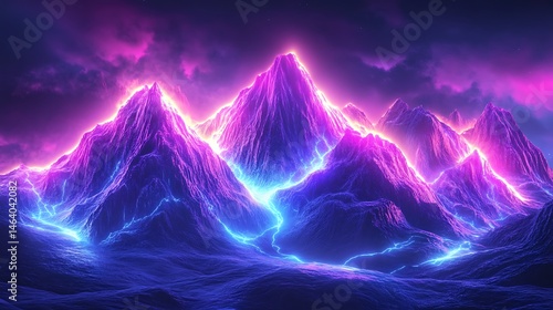 mountain, mountain, peak, peak, vale, landscape, nature, night, glow, neon, pink, blue, light, illuminated, digital, art, design, abstract, illustration, creative, colours, high-coloured, texture, background, poster, digital artwork, wallpaper, fantasy, graphic design