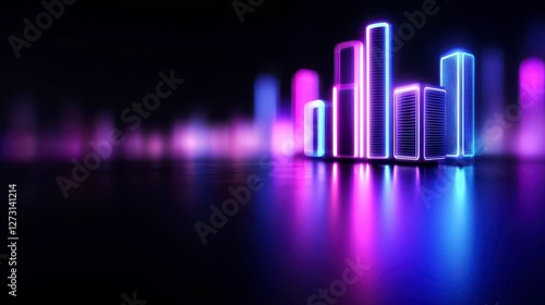 Neon Glowing Structures with Cityscape Reflections in a Vibrant Futuristic Display of Light and Color