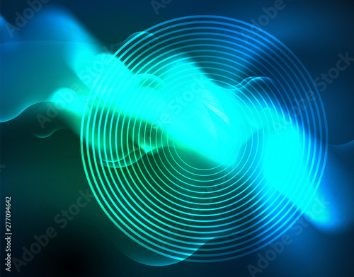 Neon glowing wave lines, blue hi-tech futuristic abstract background template