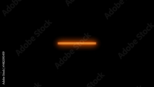 Neon LED orange color 4k illustration, Transparent Neon Light. neon shape line on black background 4k illustration.