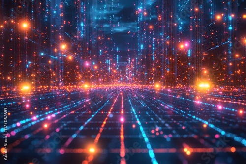 digital, city landscape, neon, light, trail, stream, dark, sky, city, futuristic, technology, abstract, datum, network, communication, cyberspace, cyberspace, virtual, reality, background, design, art, glow, colours, bright, information, modern, innovation, connection, line, particle, energy, flow, speed, motion, perspective, science, fiction, fantasy, matrix, grid, tunnel, road, highway, transportation, architecture, night, landscape