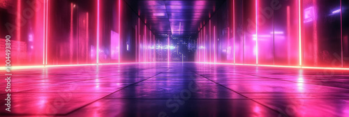 neon, light, futuristic, corridor, hallway, pink, blue, glow, tiled, floor, depth, mystery, digital, rendering, abstract, science fiction, technology, design, architecture, urban, night, dark, bright, vibrant