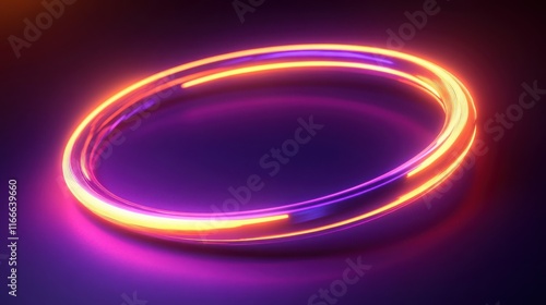 Neon orange and purple rings expanding and contracting in 3D space, with glowing trails.