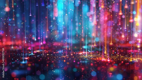 Neon rain reimagines a classic scene. Radiant droplets of light dance and swirl, creating a visually stunning and captivating artwork.