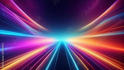 Neon Speed Tunnel: Abstract vibrant streaks of light forming a dynamic tunnel, conveying speed, energy, and futuristic technology. Perfect for tech, gaming, and transportation themes.