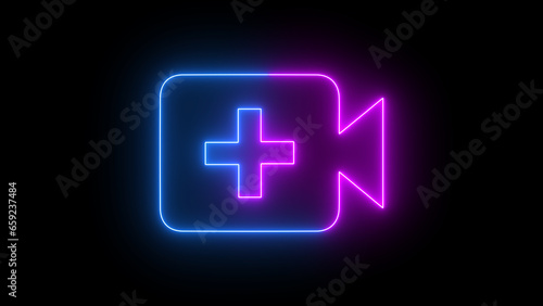 neon video camera icon. neon camera sign. Glowing neon line Movie or Video camera icon isolated on black background.