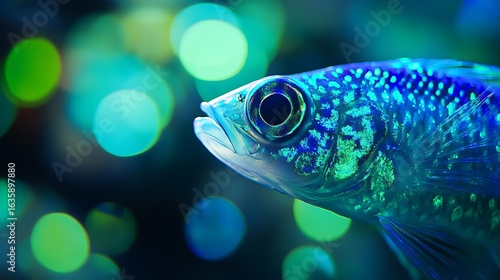 Neon-inspired bokeh with bright, glowing circles in electric blue and green shades