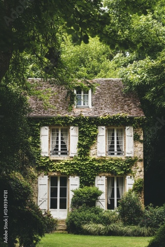 stone, house, garden, greenery, daytime, tranquil, nature, architecture, window, shutter, landscape, residential, foliage, tree, beautiful, peaceful, home, rustic, exterior, charming, vine, bungalow, serenity, landscaping, summer, sunlight, retreat, environment, heritage, warm, inviting, scenic, secluded, bright, design, style, countryside, old, traditional, picturesque, rural, building, window, wall, door, brick, ivy, facades