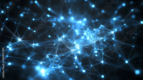 Network of interconnected points with glowing lines, resembling a neural network or digital system, conveying data exchange and AI themes.