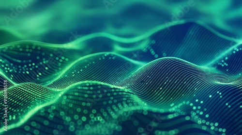 Network technology concept digital wavy abstract background composed of blue-green gradient line
