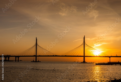 New bridge on a sunset. Saint Petersburg. Russia.