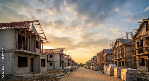 construction, housing, development, real estate, building, home, residential, property, estate, new, project, suburban, neighbourhood, urban, architecture, infrastructure, housing market, community, construction site, industry, contractor, material, investment, growth, sunset