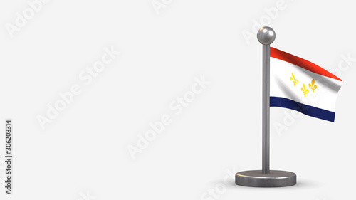 New Orleans Louisiana 3D waving flag illustration on tiny flagpole.