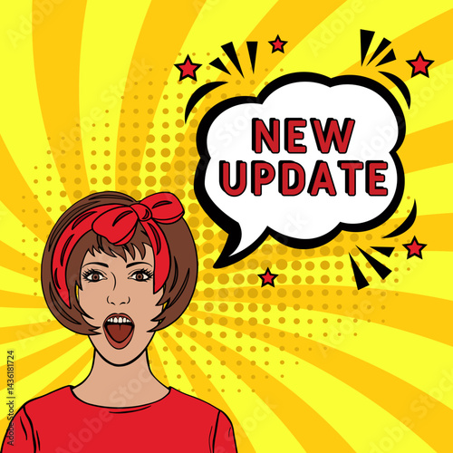 New Update. Comic book explosion with text New Update. Banner for business, marketing and advertising. Social Media banner. Vector bright cartoon illustration in retro pop art style. Creative poster.