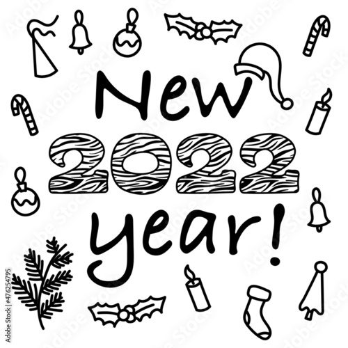 2022, art, bell, candle, candy cane, cartoon, celebration, christmas, christmas tree, collection, cookie, cute, decor, decoration, decoration, design, design element, doodle, drawing, drawn, element, graphic, graphic, hand-drawn, happy, happy new year, hat, holiday, holiday, icon, illustration, isolated, lettering, merry, new, new year, paper, party, set, sock, star, symbol, tiger, traditional, vector