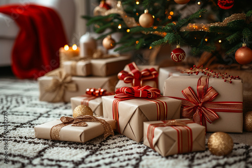 background, christmas, tree, winter, new year, gift, box, celebration, holiday, ornament, present, season, decoration, decor, tree branch, surprise, bauble, december, festive, merry