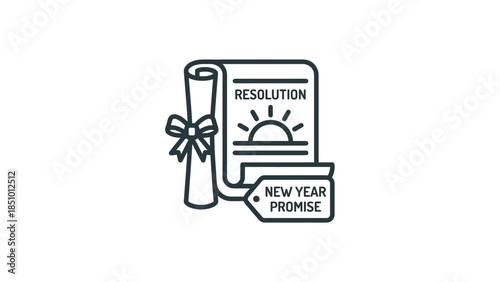 new, year, resolution, promise, document, icon, goal, commitment, plan, objective, target, ambition, future, start, beginning, change, growth, personal, development, success, achievement, motivation, inspiration, hope, celebration, holiday, seasonal, vector, graphic, symbol, design, illustration, art, clean, simple, minimalist, outline, line, drawing, concept, idea, strategy, decision, choice, action, progress, journey, quest, endeavour