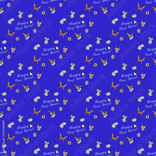 seamless pattern, new year, textile, ornament, christmas, celebrate, cheerful, star, seasonal, wallpaper, repeat, december, gift, paper, cardboard box, happy, illustration, seamless, vector, texture, decorative, leaf, season, tree branch, candleholder, celebration, object, new, sound, year, traditional, background, fabric, horn, shape, style, simple, element, pattern, bell, party, blue, creative, beautiful, eve, surface, sock, gift, flames