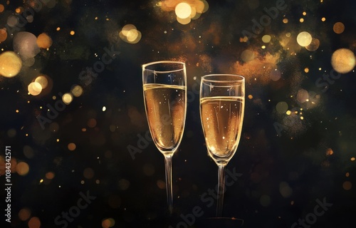 New Year's Eve toast background with copy space, elegant champagne glasses