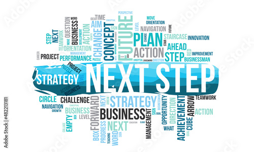 Next step word cloud template. Business concept vector background.