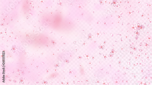 Nice Sakura Blossom Isolated Vector. Feminine Falling 3d Petals Wedding Texture. Japanese Bokeh Flowers Wallpaper. Valentine, Mother's Day Summer Nice Sakura Blossom Isolated on Rose