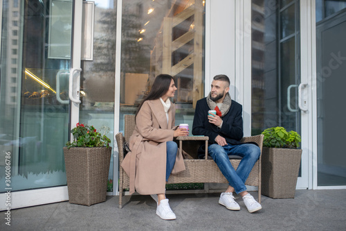 hot drink, conversation, girlfriend, boyfriend, talk, meeting, free time, flirting, talking, amused, pleased, coat, romantic, couple, relationship, feeling, communication, appointment, love, foulard, relation, young people, autumn, caucasian, outdoors, young, outside, man, woman, casual attire, two people, weekend, together, human relationships, romance, date, pleasant, positive, closeup, trendy, stylish