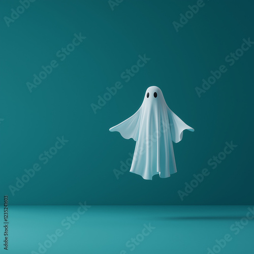 Niedliches, 3D-maniertes Gespenst mit schwarzen Augen vor turquoise Hintergrund