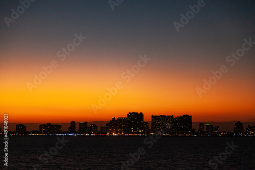 night, city, architecture, orange, atlantic ocean, coast, florida, travel, orange sky, water, sky, landscape, modern, city landscape, skyscraper, view, skyline, light, evening, silhouette, urban, sunset, tower, harbor, bay, us, dark, downtown, building, sea, dusk, golden hour, building, megalopolis, harbor