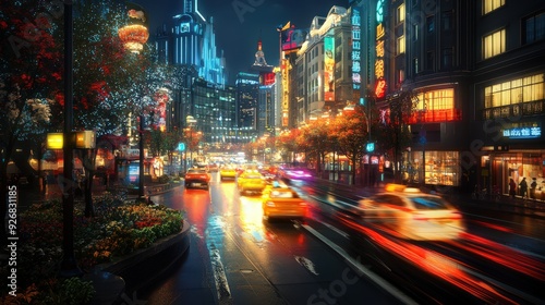 city, night, neon, light, street, traffic, car, building, architecture, urban, modern, asia, china, city landscape, skyline, street light, rainy, wet, blur, motion blur, tied-up, fast, speed, energy, vibrant, colourful, commercial, retail, shop, signs, advertising, dynamic, perspective, landscape, travel, tour tourism, destination, atmosphere, mood, impression, urban life, nightlife, city lights, night photography, city scene
