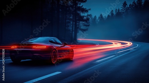 car, night, road, speed, forest, drive, sport, fog, light, motion, automotive, vehicle, luxury, travel, adventure, fast, dark, asphalt, highway, wheel, tire, elegant, power, engine, journey, dynamic, blur, landscape, nature, speeding, electricity, energy, technology, modern, stylish, sleek, powerful, performance, driving, automobile, transportation, curve, night time, background, scenic, exterior